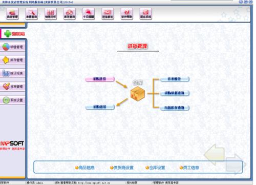 进货管理:进行商品采购入库,采购退货,进/退单据和当前库存查询,与供货商的往来帐务。