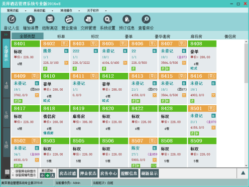 美萍新酒店管理系统是美萍公司推出的一款专业的酒店管理软件,软件集成客房前台管理、客房预订系统、客户营销系统、库存管理系统以及POS销售系统。充分结合中国酒店业的管理实情,系统界面简洁优美,操作直观简单,无需专门培训即可正常使用。是广大酒店、宾馆,饭店,旅馆,招待所等信息化管理场所理想的宾馆客房管理软件。